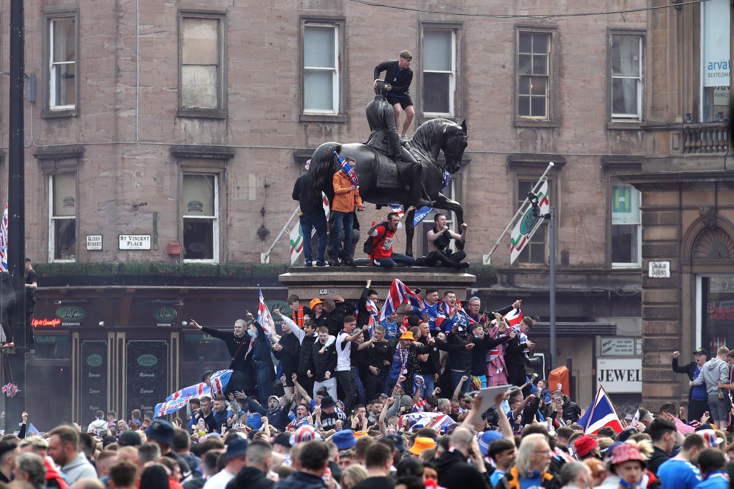 Rangers fans celebrate in George Square, Glasgow after Scottish Premiership title win - Rangers Glasgow George Square